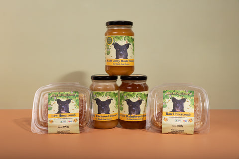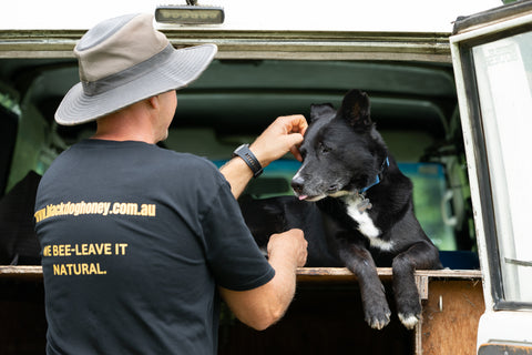 Fortunately, Black Dog Honey has nothing to do with Winston Churchillโs black dog of depression. It is the total opposite, we have named our business after our adorable and rather happy Kelpie Cross called Ben.Ben came into our lives as a rescue dog and has accompanied us on most of our adventures. Benโs infectious and happy nature, has made him the inspiration behind much of our work.